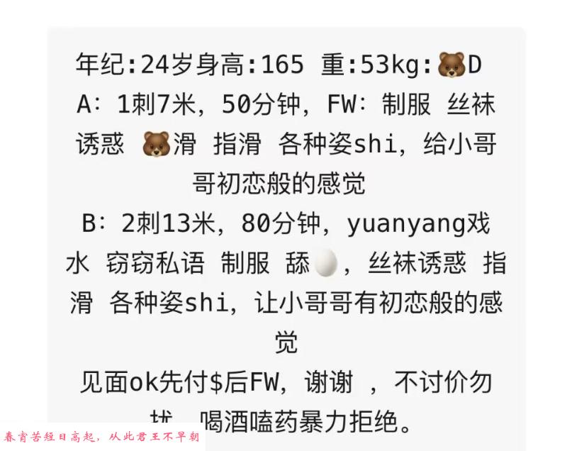 江畔明珠中项小姐姐,还有一个,可双飞,550口爆一次手推一次,双飞可以谈,900两次。这个比较丰满,